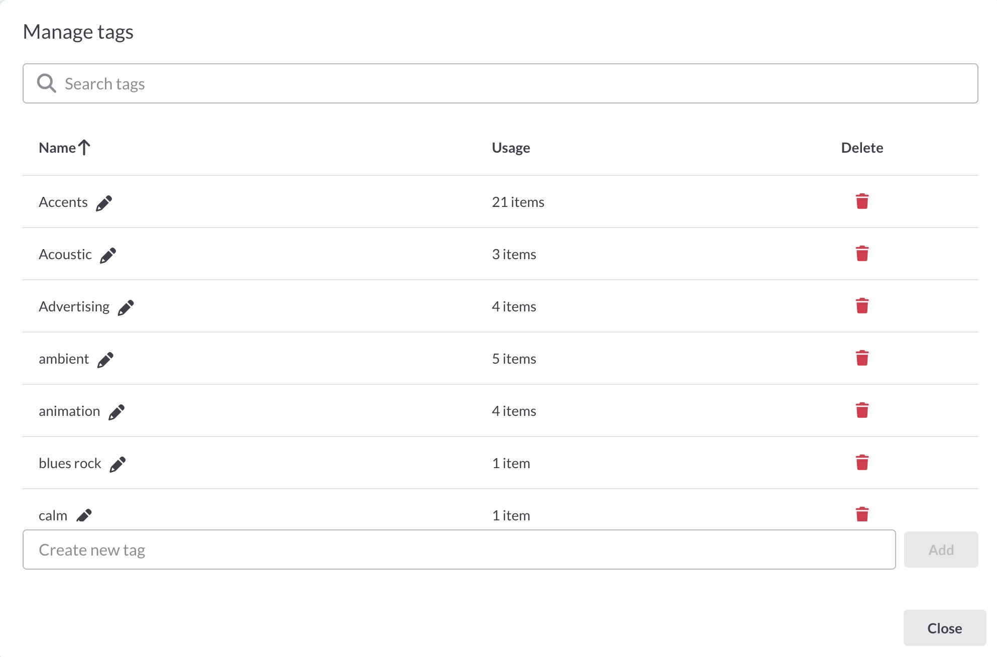 - Delete a tag (removes it from all items)