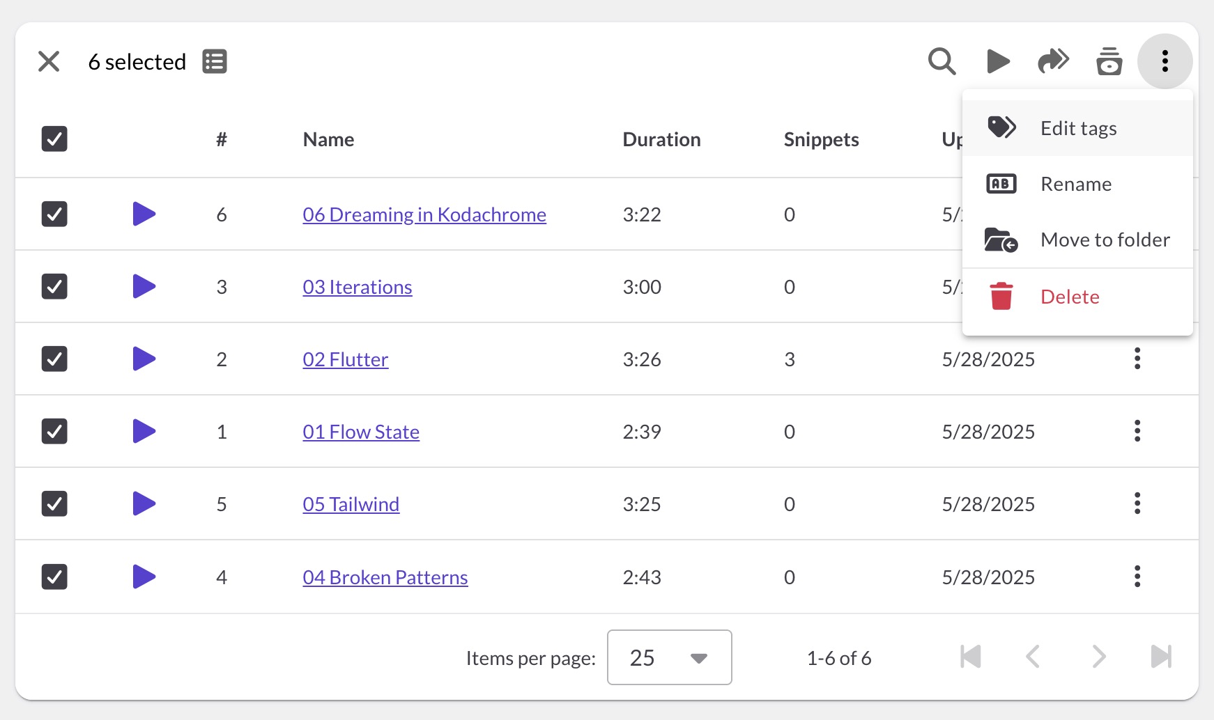 While folders group items into collections, tags let you add multiple labels to a single item. Use tags for moods, instruments, tempo, project names, or anything else. Tags work across all your libraries: Playlists, Reels, Audio, Videos, Images, and Files.