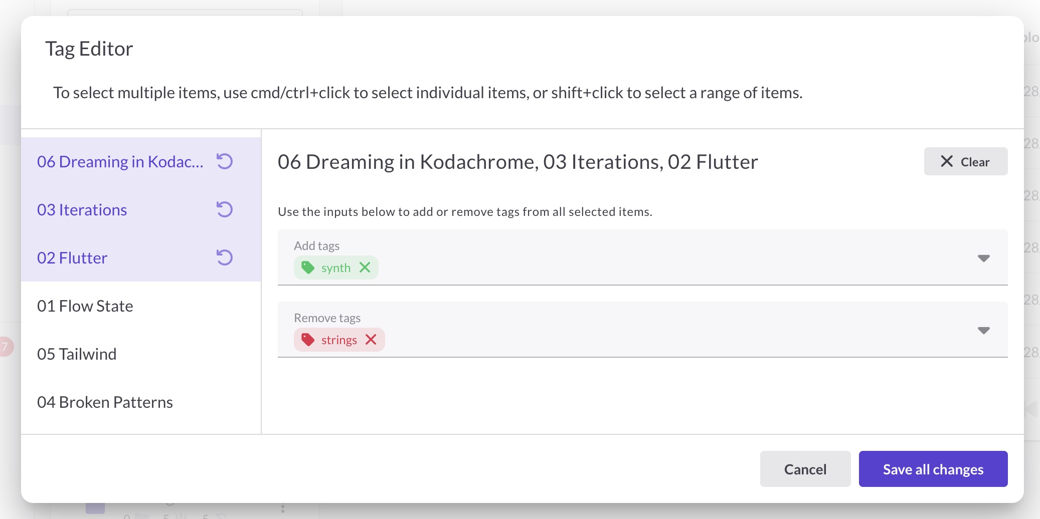 The Tag Editor lets you add or remove tags from multiple items at once.
