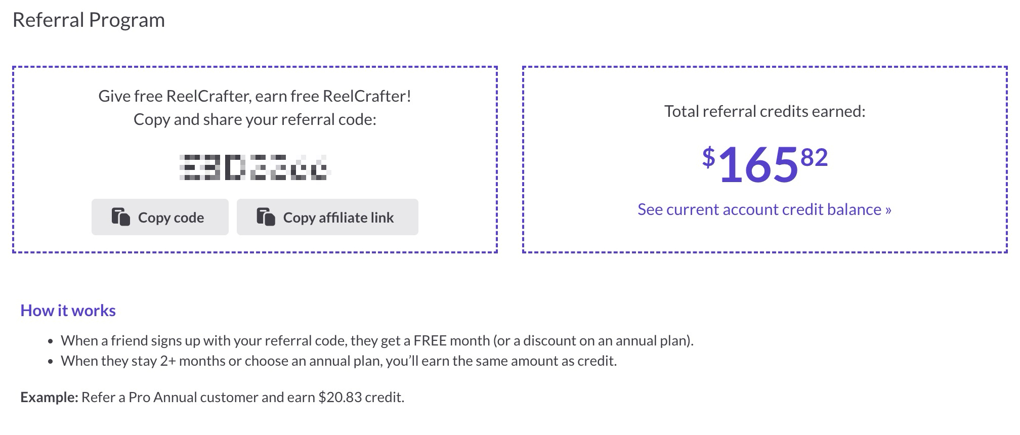 Yes! ReelCrafter has a referral program that rewards you for spreading the word. Give your friends free ReelCrafter, and earn account credits when they subscribe.