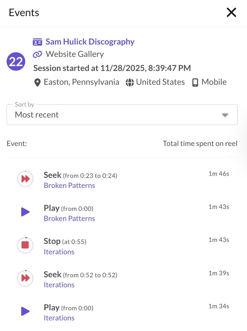 If you’ve added a playlist to your website using an iframe embed, you’ll see Embedded Player Activity on your Dashboard. This shows how people interact with your embedded playlist outside of ReelCrafter.