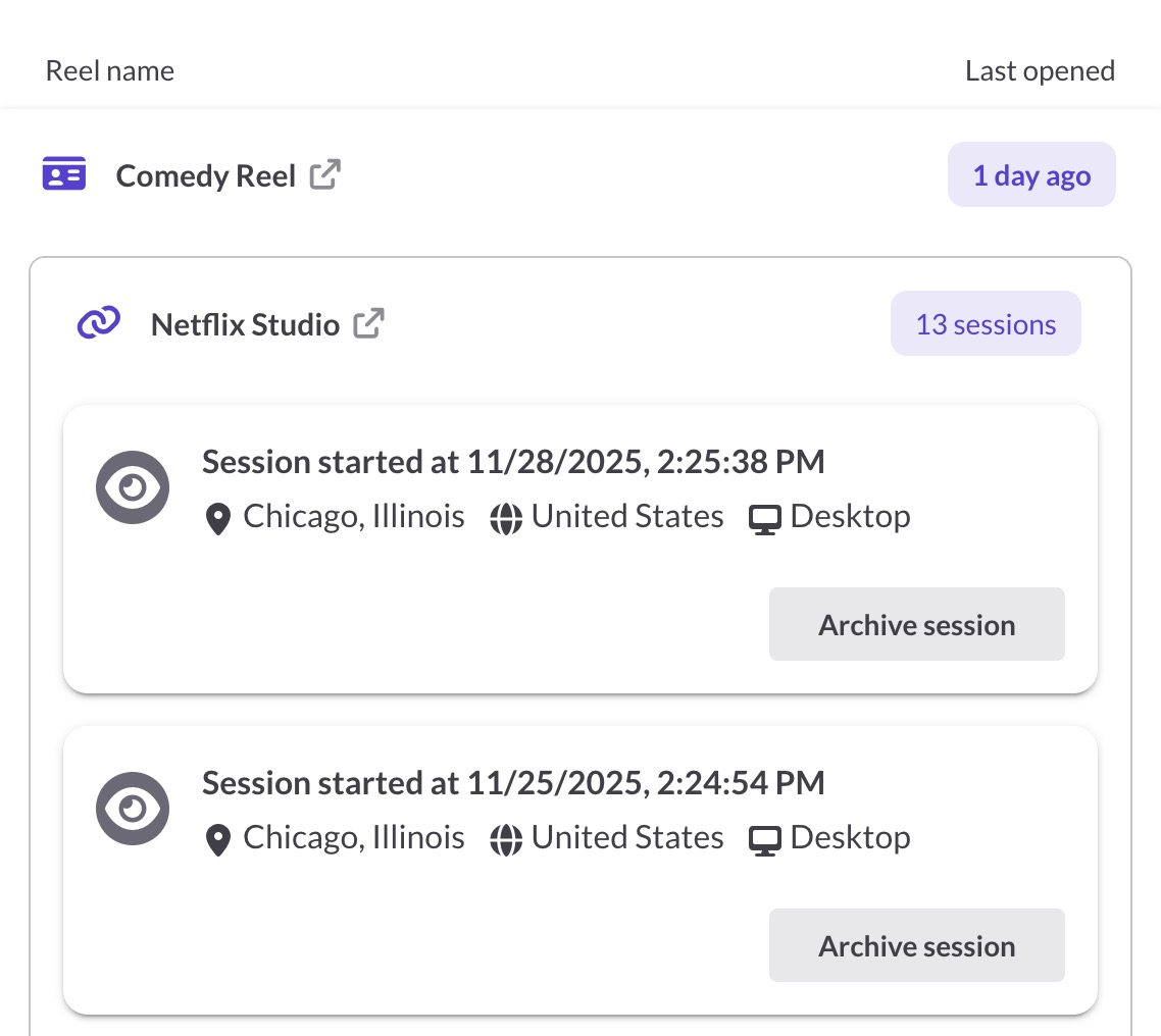 - Sessions for each Share Link