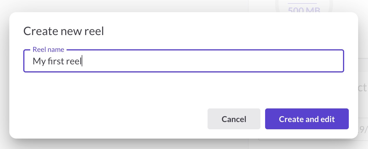 Click the + icon in the upper right corner to create a new reel. Give your reel a name and click Create and edit.