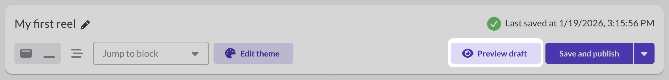 Click Preview draft in the upper right to see how your reel looks. This opens in a new tab with a “Draft” watermark.