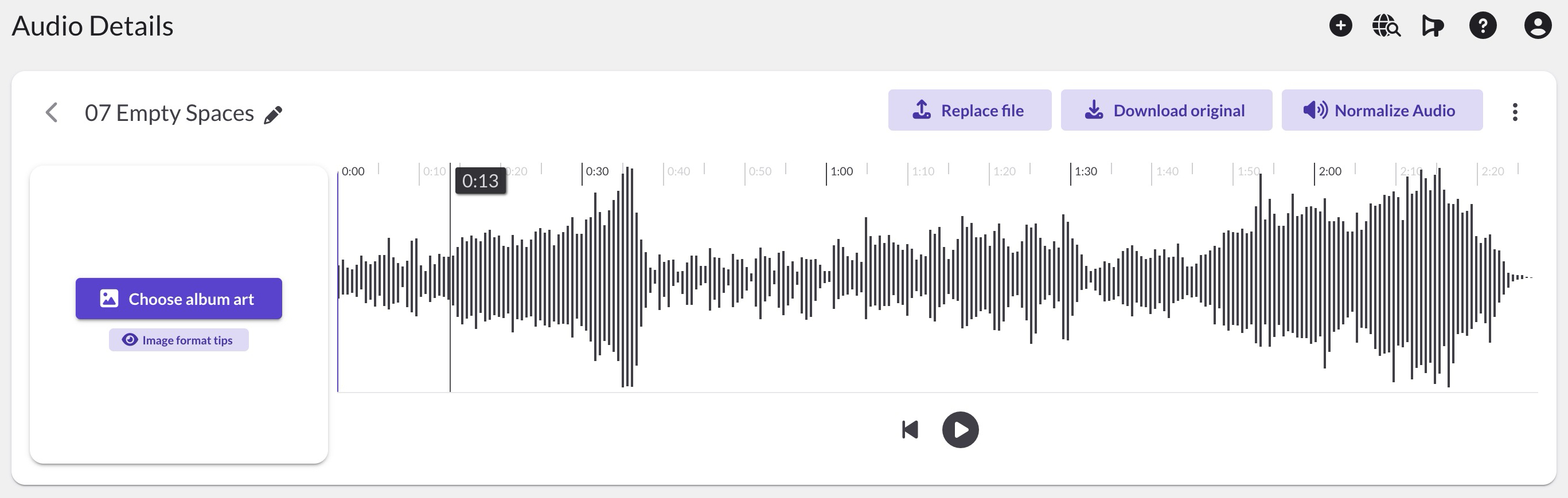 - Click the Choose album art button (next to the waveform)