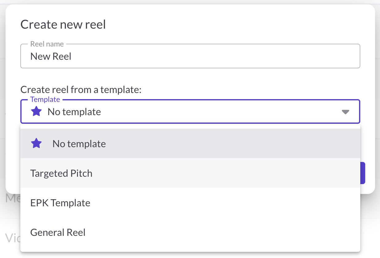 - The Template dropdown when creating a new reel
