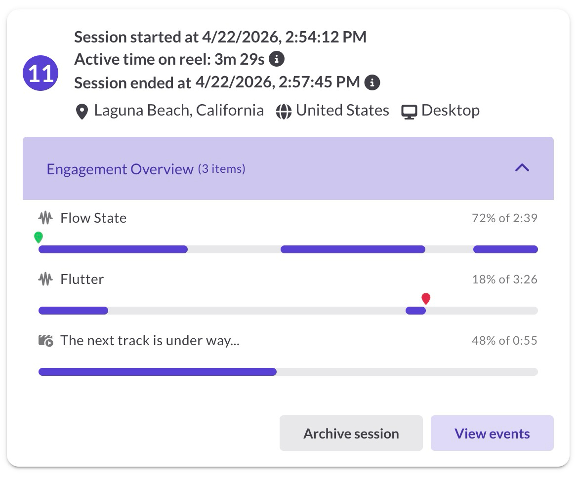 Together, these give you a much clearer picture of engagement. A session with 45 minutes of active time tells a very different story than one where someone opened your reel and left the tab sitting in the background.