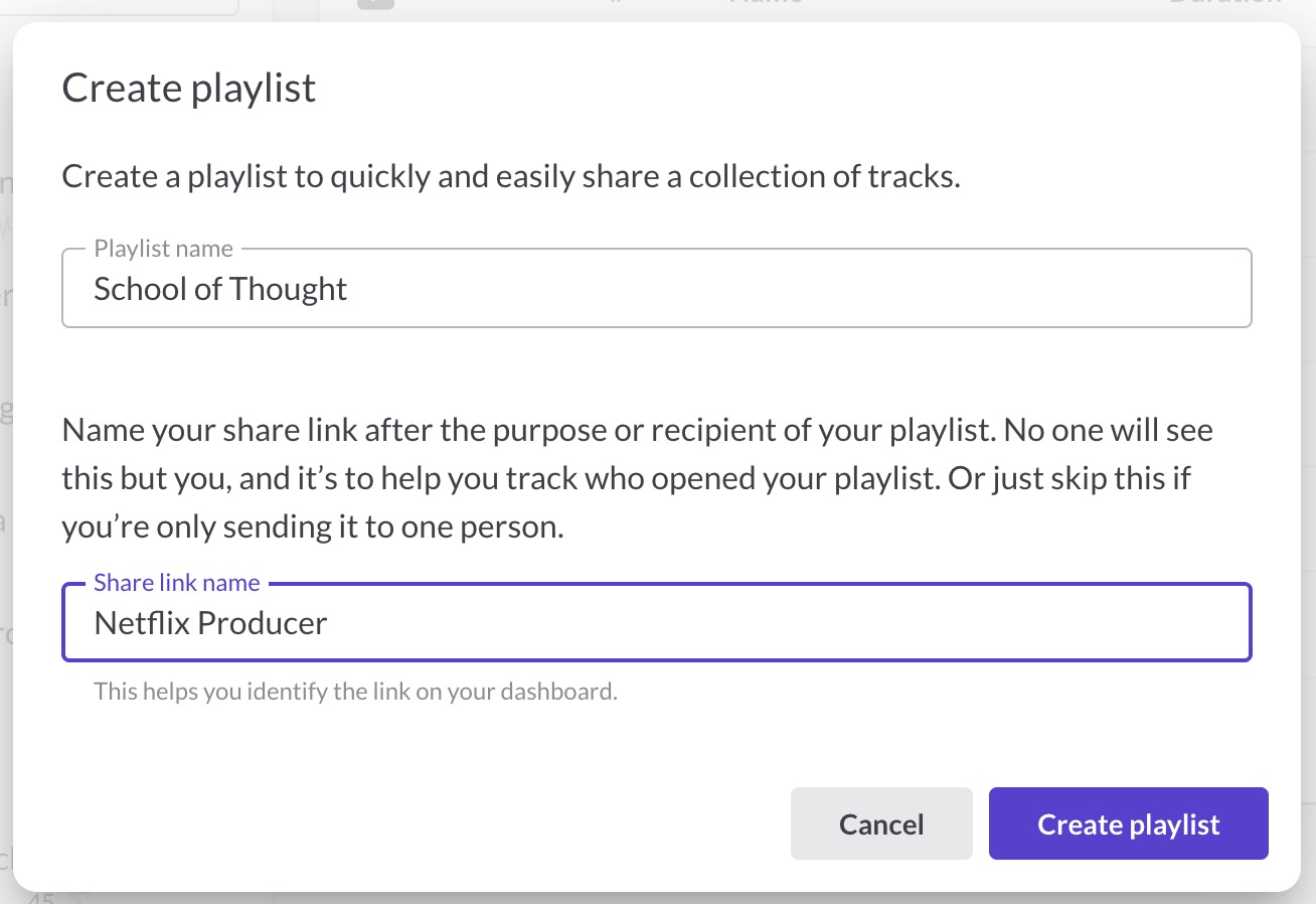 Playlists let you share a collection of audio tracks quickly, with full tracking to see who listened and what they played. Unlike reels, playlists don't include your branding. They're designed for fast, focused sharing when you don't need a fully designed page.