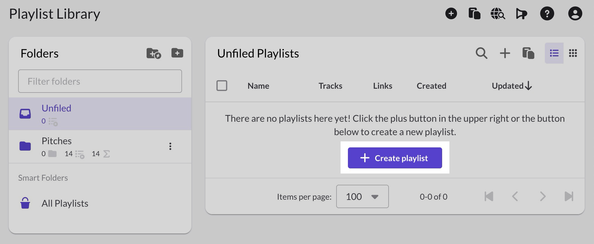 - Folders: Create folders to organize playlists by project, client, or purpose