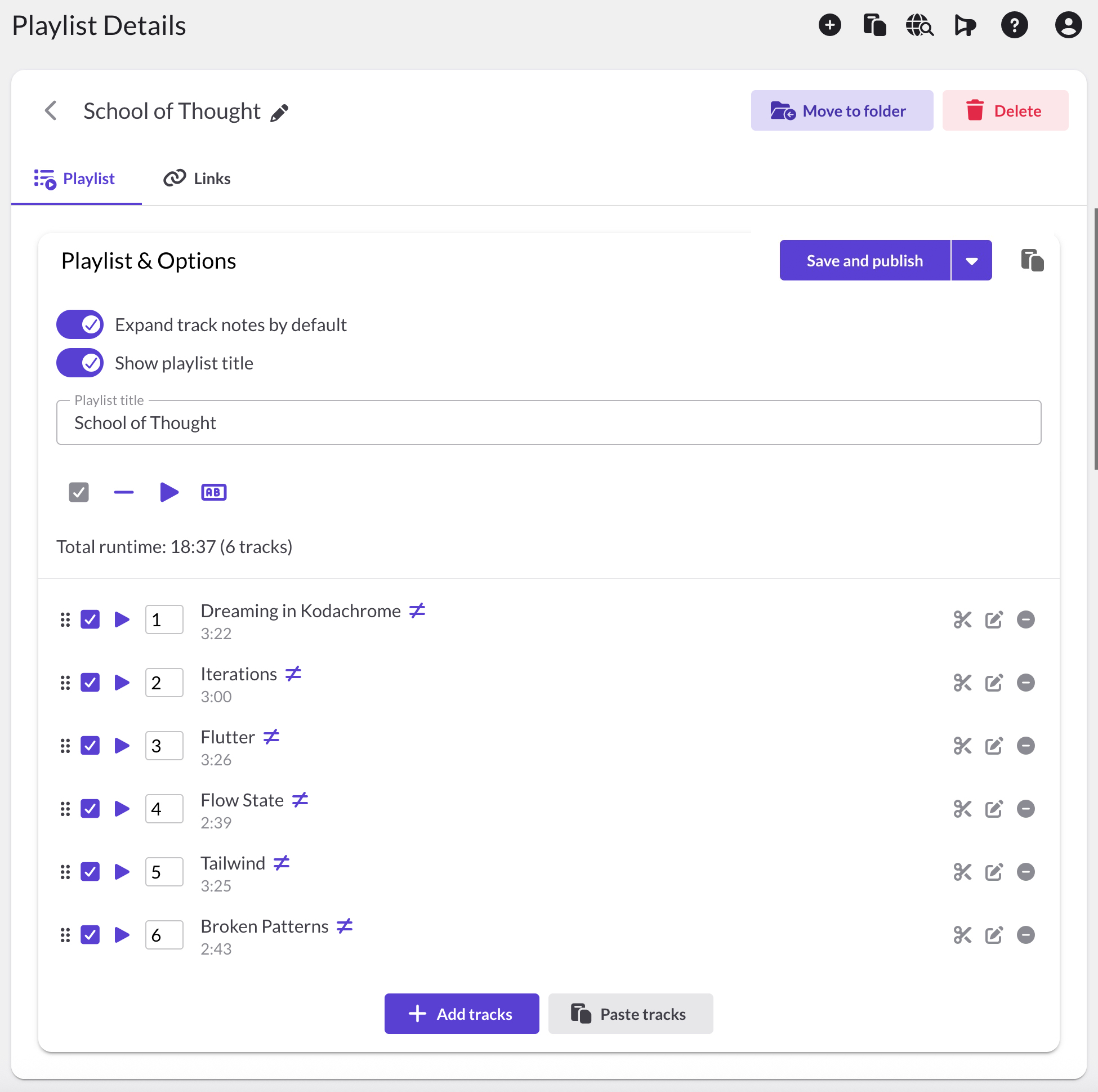 - Expand track notes by default: When enabled, public notes appear expanded on the playlist page