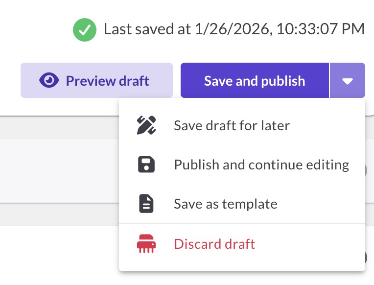 What's the difference between Save draft for later and Save and publish?