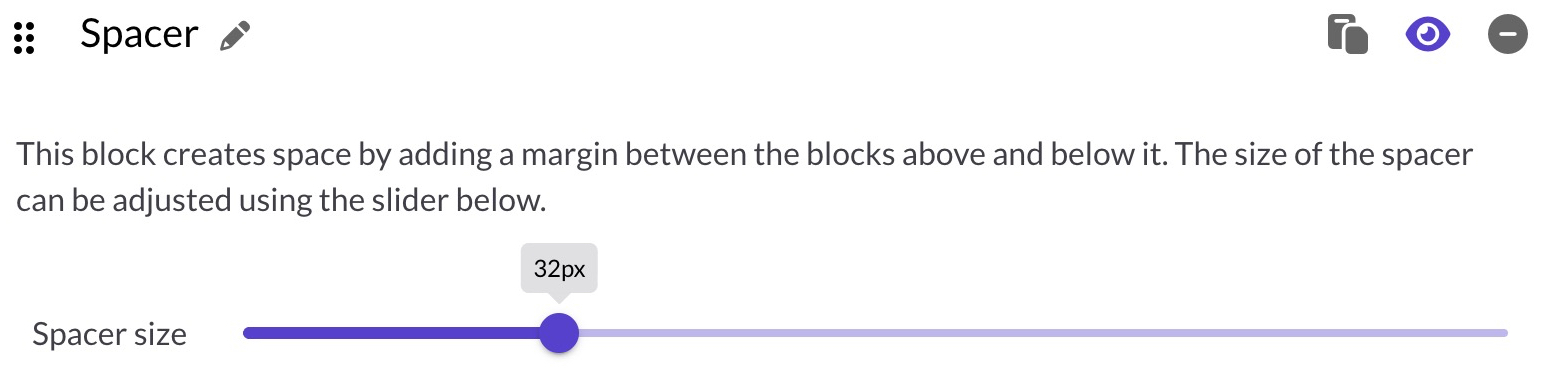 The Spacer block adds vertical space between blocks in your reel. Use it to create visual separation or improve the layout of your content.