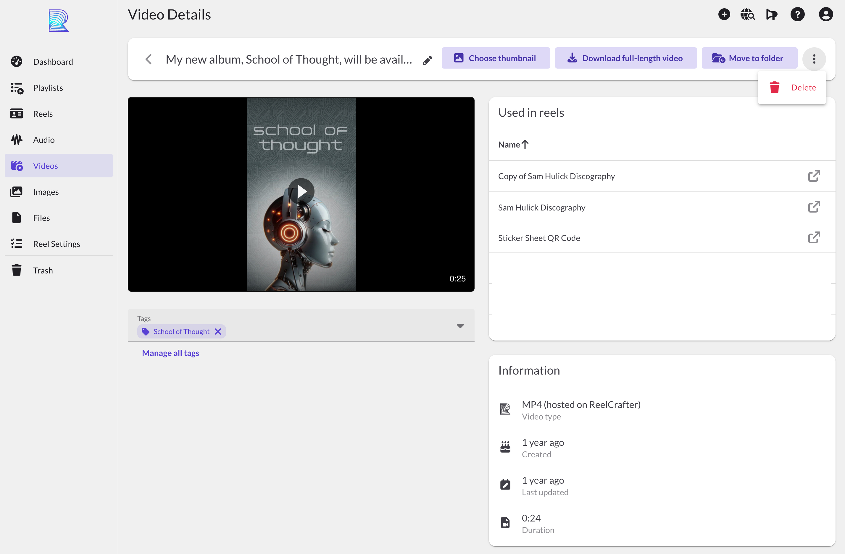 - Video type: MP4 (hosted on ReelCrafter), YouTube, or Vimeo