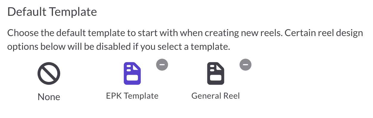 To set a default template, go to Reel Settings ▸ Design Defaults and select a template from the picker.