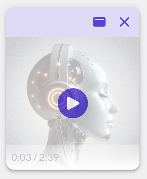 - Mini mode: Click the minimize icon to collapse the player to a compact view showing just the album art (or waveform icon) and time. Hover over it to reveal play/pause controls.
