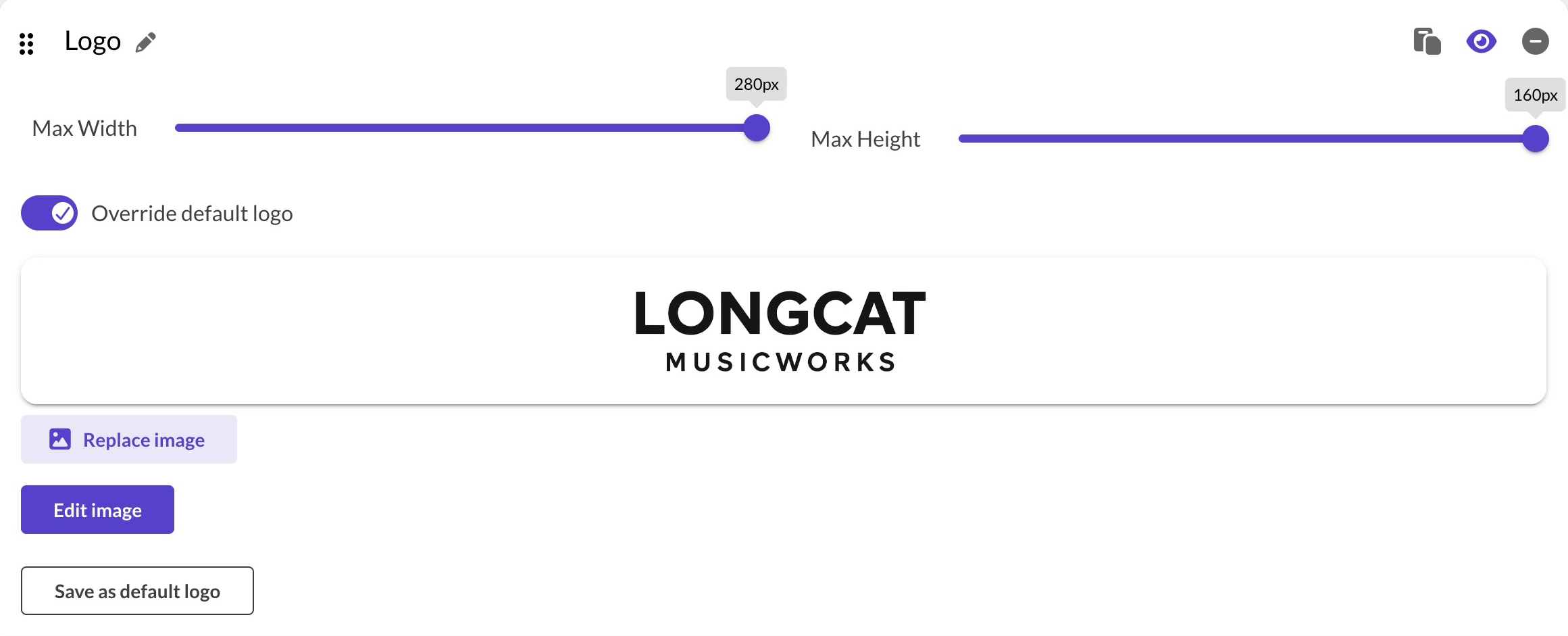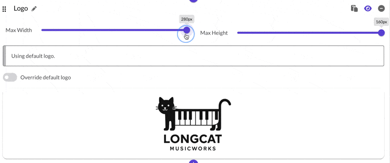 Use the Max Width and Max Height sliders to control how large the logo can appear. The logo scales to fit within these dimensions while maintaining its aspect ratio.